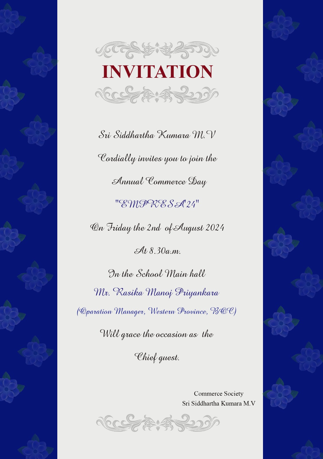 වාණිජ සංගමය විසින් පවත්වනු ලබන වාර්ෂික වාණිජ දිනය 2024.08.02 වන දින පාසලේ ප්රධාන ශාලාවේ දී පැවැත්වේ.